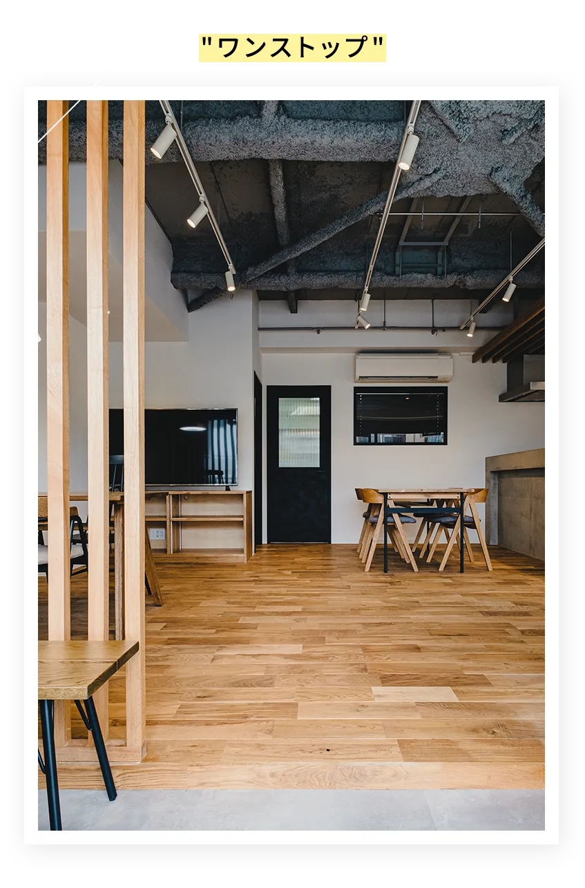 リノデュースは、この煩わしさをなくすために"ワンストップサービス"をご提供。加えて、どんな物件を購入しても仲介手数料が一切かからないのは、リノデュースだけの強みです。