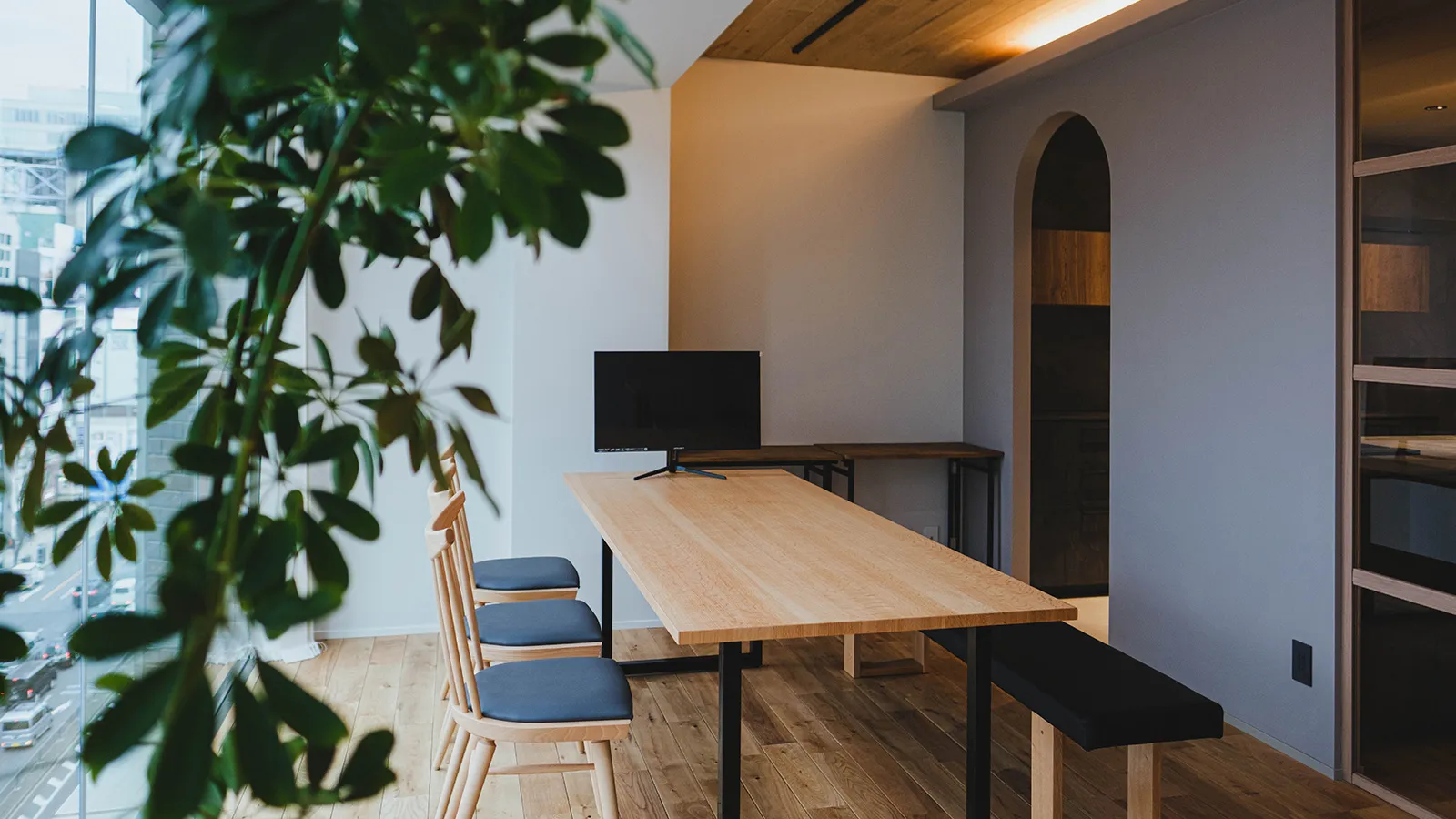 2026年新たにオープンしたばかりのリノデュース青山本店は、ジャパンディスタイルとインダストリアルを融合させたリノベーション空間となっております。最新のデザインスタイルやコンクリートをむき出しにした天井は高さと広さと開放感が感じられ、築古物件のリノベーションとしても参考にしていただけます。