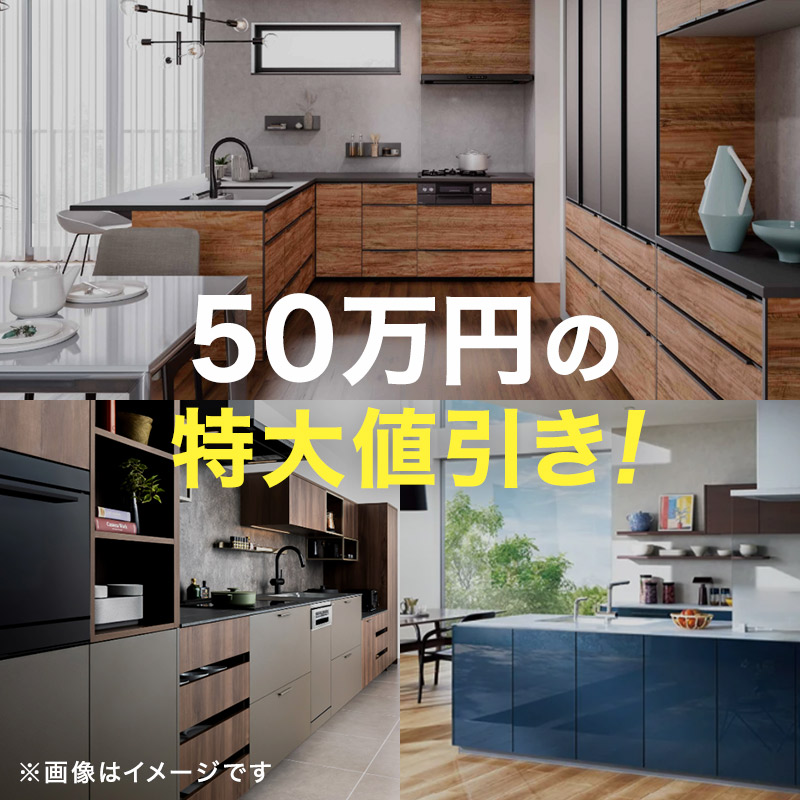 ご指定商品以上のキッチンをオーダーいただいた方にお見積もりから50万円の特大お値引き!