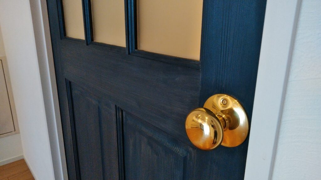 そこへ合わせたのは、黒の造作ドア。