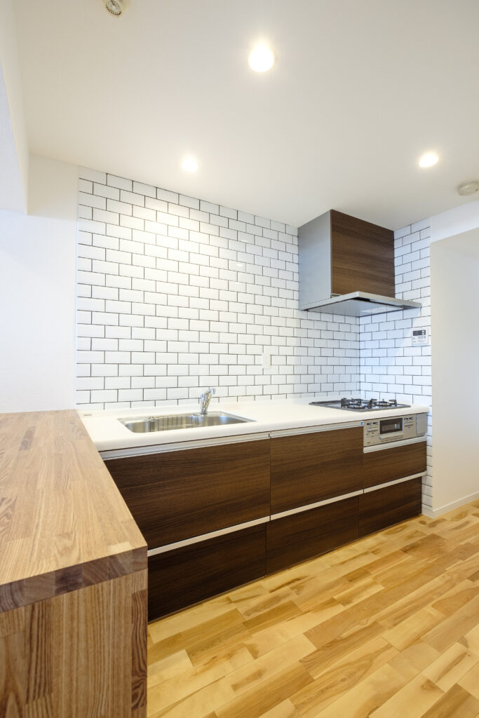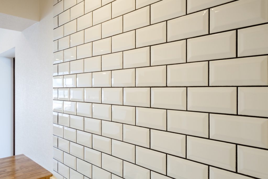 キッチンの壁面には、サブウェイタイルを全面に採用しました。