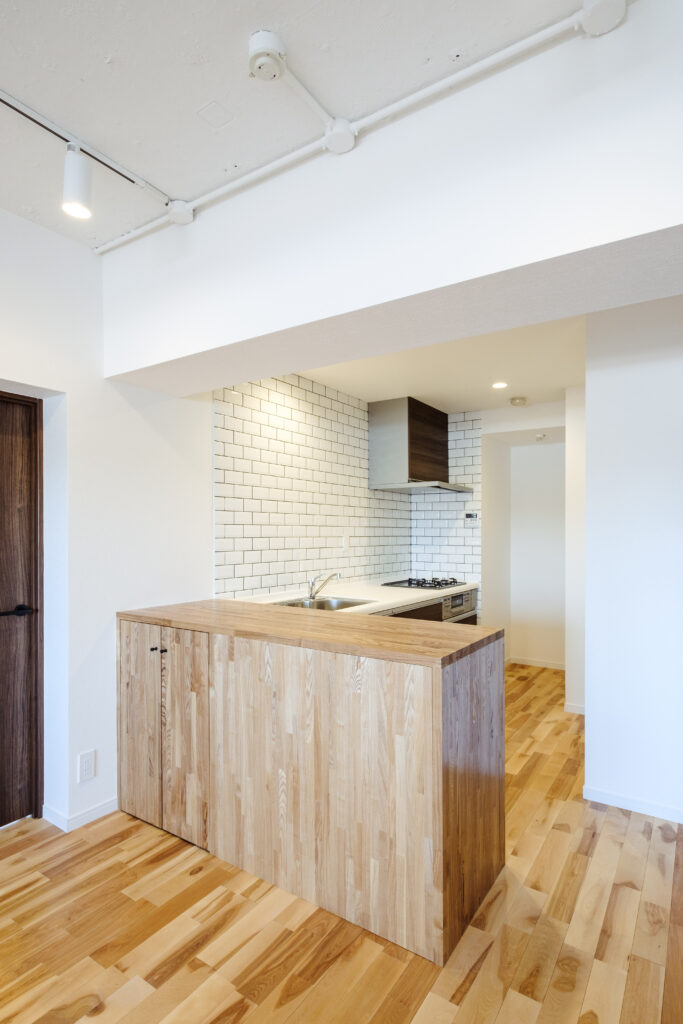 キッチンには、木材で仕上げた造作カウンターを設置しました。