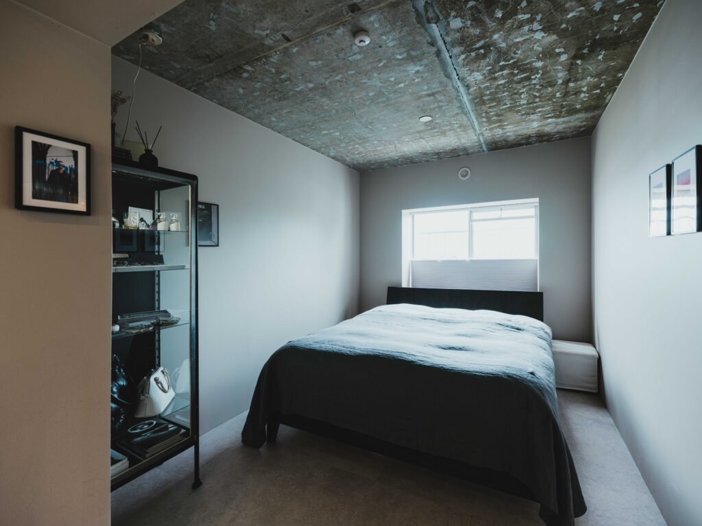 南側に面しており、日光もしっかりと入ってくるので、見た目よりも暖かく明るいこちらのお部屋。ダブルベッドを置いて、寝室としても利用されています。