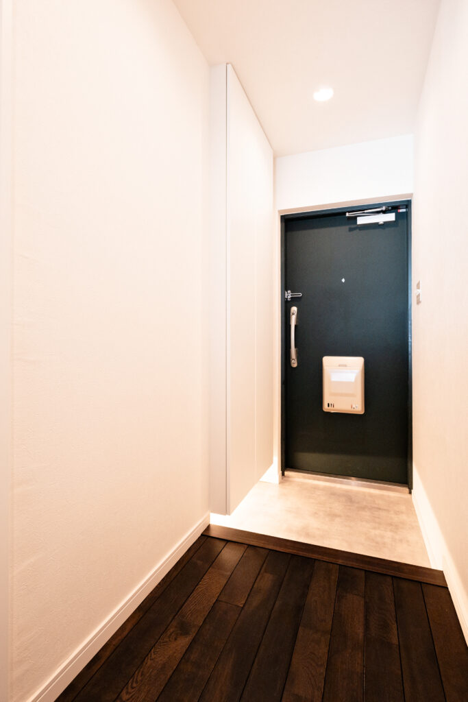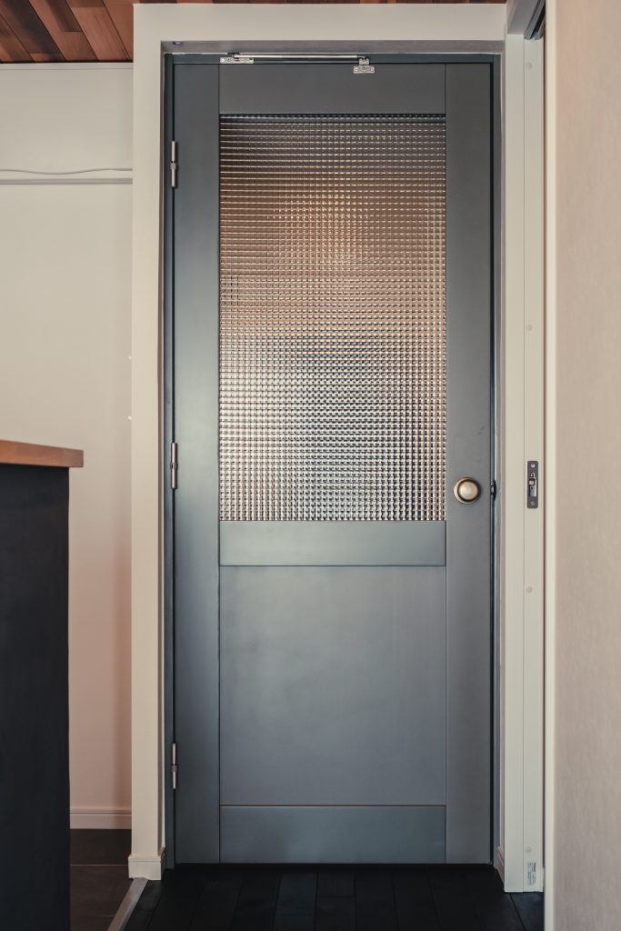 玄関から視線を上げた先にあるのは、堂々と佇む特注のグレー扉。