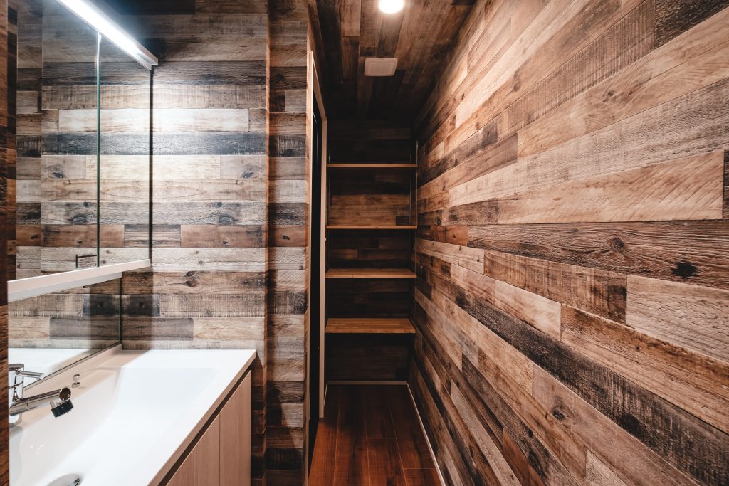 木の質感に囲まれた佇まいは、どこか山のコテージを思わせます。