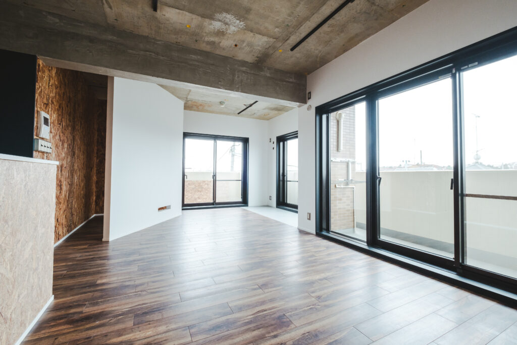 3LDKの一室を大胆にリビングへと取り込み、映像を映し出すための壁面を確保。