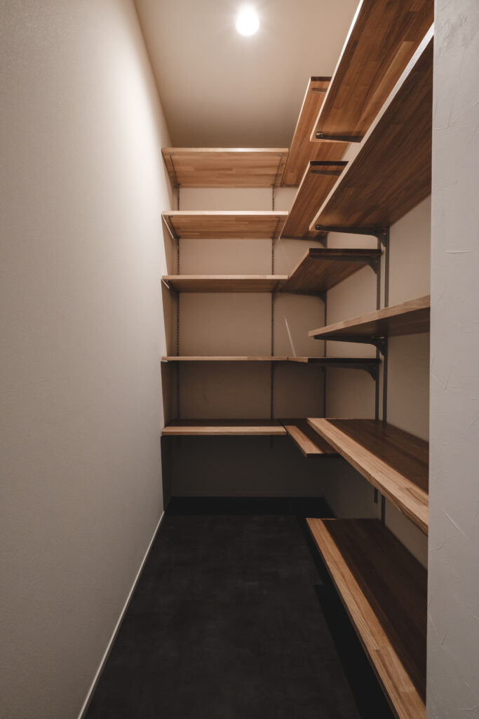 その分生まれたスペースを活かし、玄関横に収納を設けました。