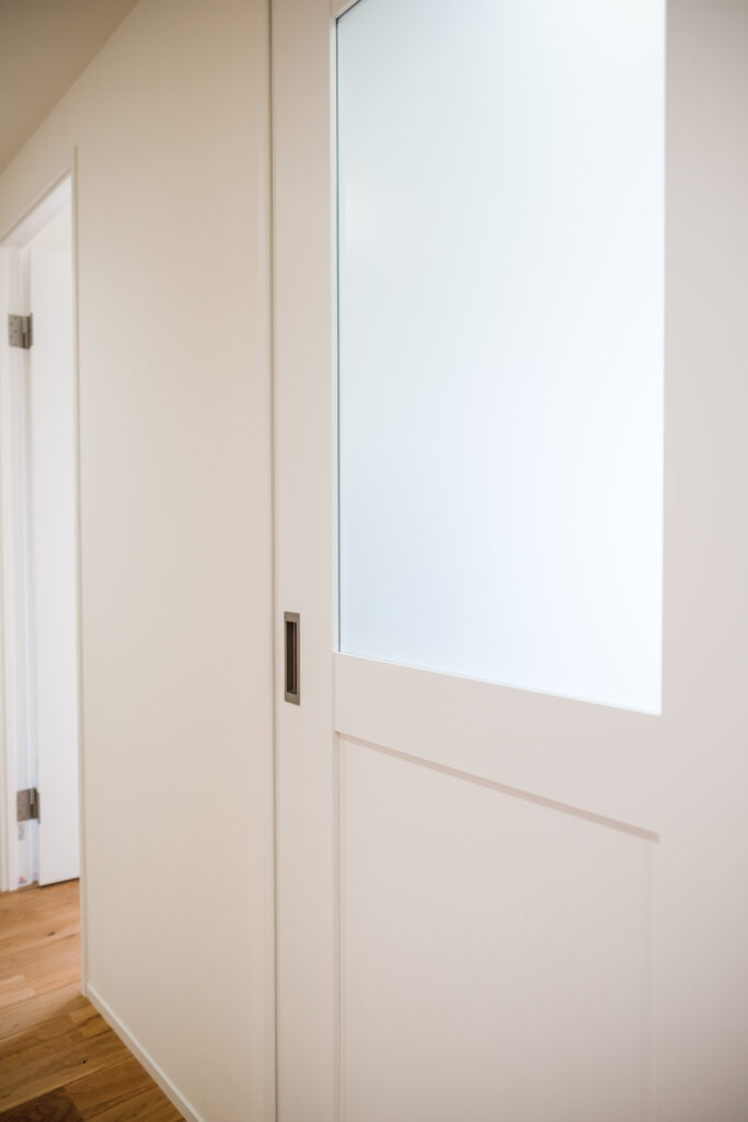 ドアはリビング、洗面室、トイレ、洋室まで、すべて漆喰ホワイトで統一。