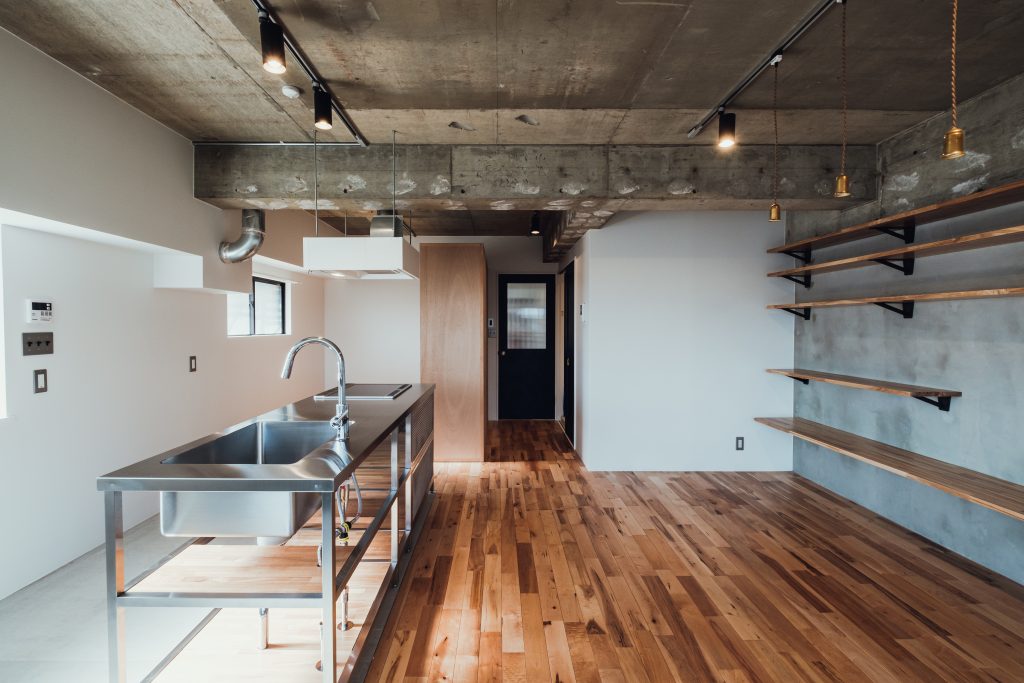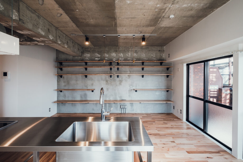 配管もそのまま見せ、壁にはコンクリートの質感を残しました。
