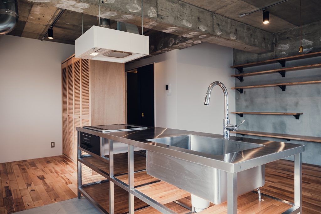 主役は、特注のステンレスキッチン