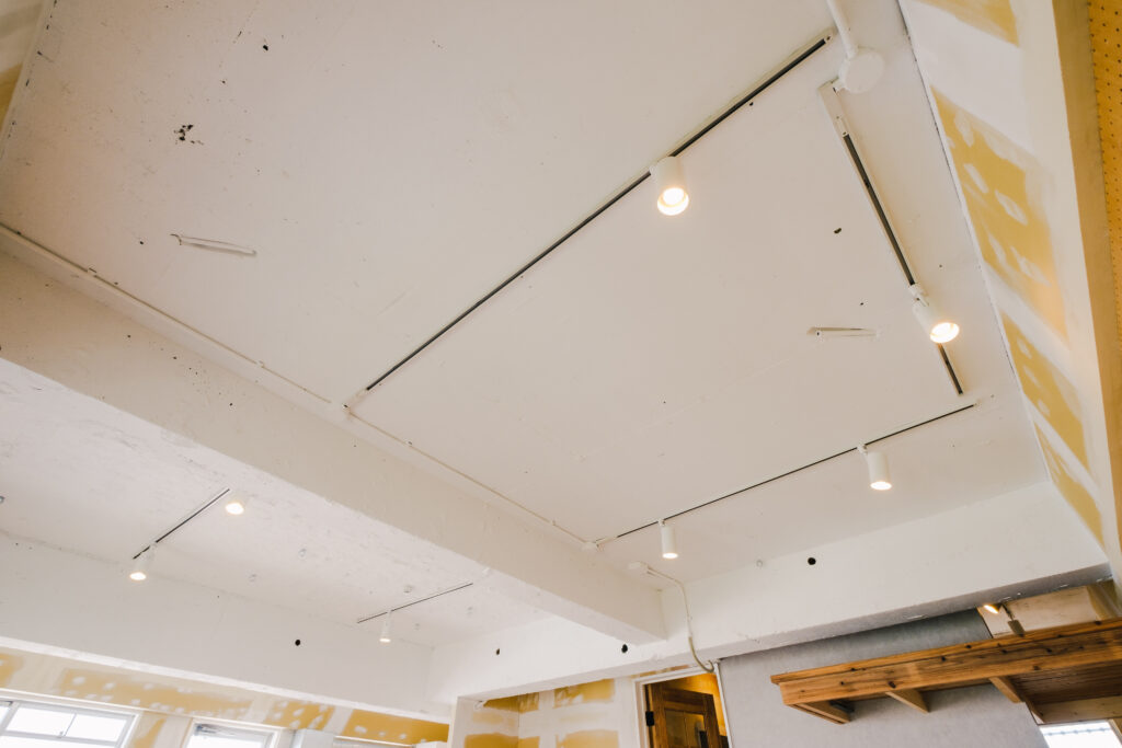 有孔ボードと仕上げ前の天井があるキャンバス