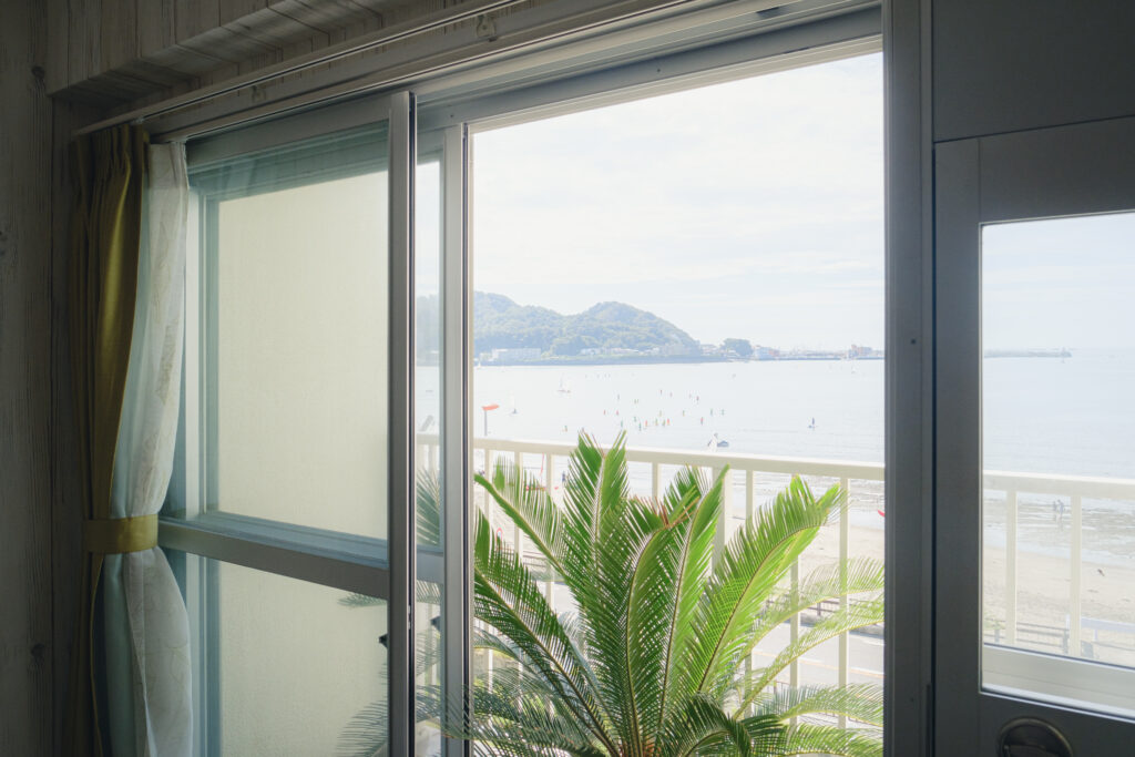 LDKの窓からは海を望める、抜群のロケーションも活かしています。