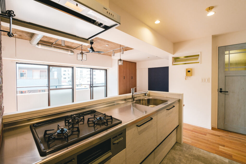 リノベーションを経て、今ではLDK全体を見渡せる対面キッチンに生まれ変わりました。