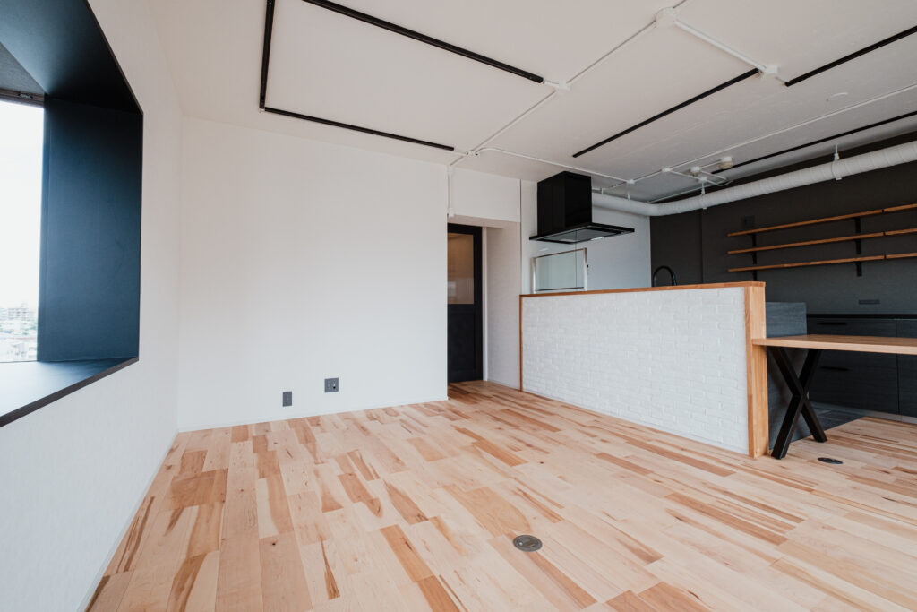 もともと洋室とリビングに分かれていた部屋は、壁を取り払い、ひとつの大きなLDKへと姿を変えました。