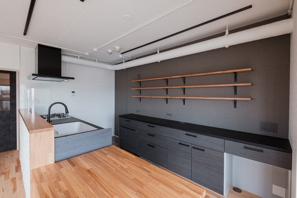 無垢材の温かみと、黒を基調にしたシャープなライン。