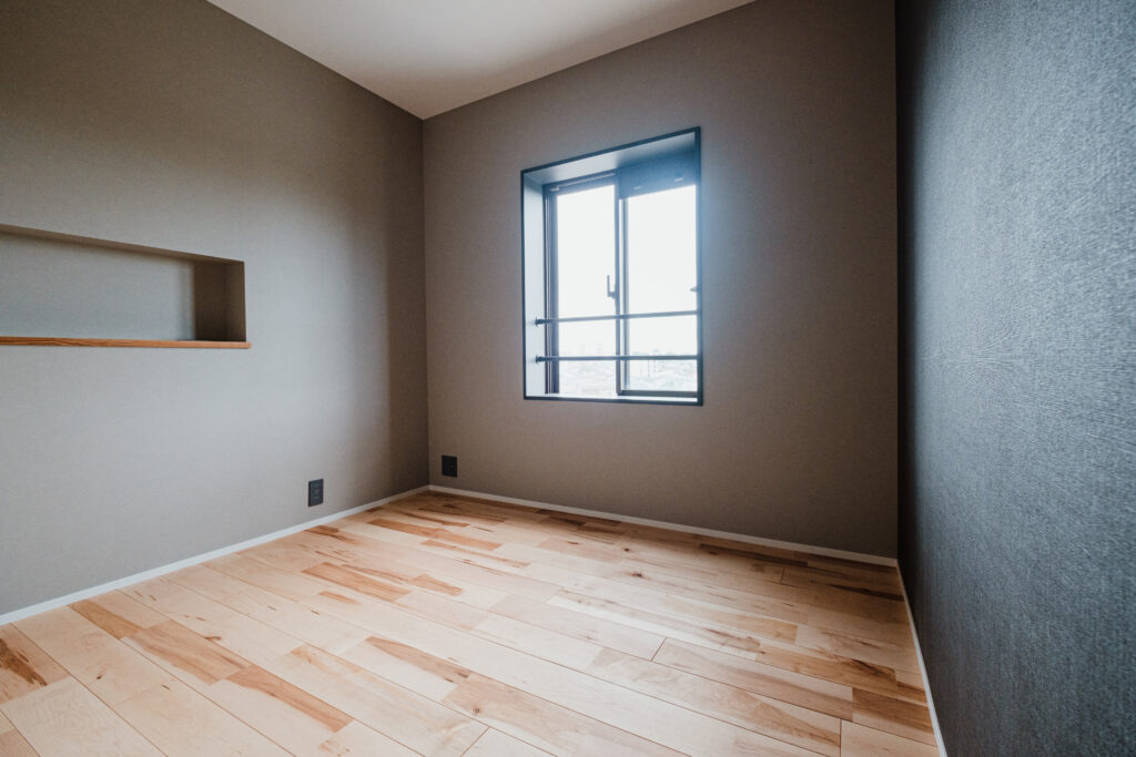 室内窓と無垢フローリングが心地よい換気と温かみを作り出し、遊び心と落ち着きが絶妙に混ざり合う部屋に仕上がりました。
