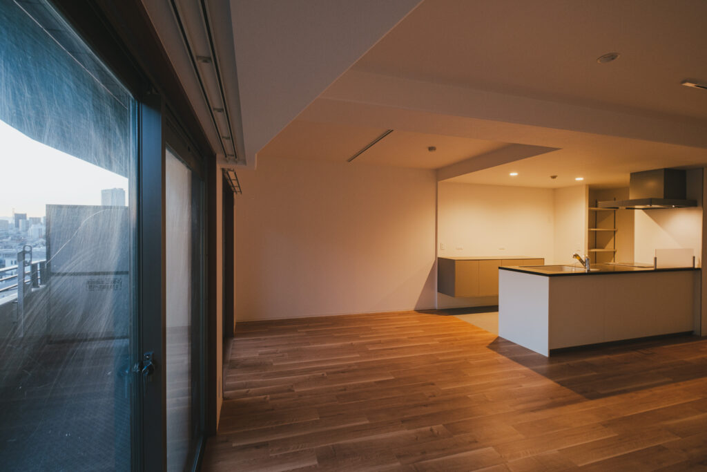 隣接する洋室は、建具を取り払いシンプルで広々とした印象に。