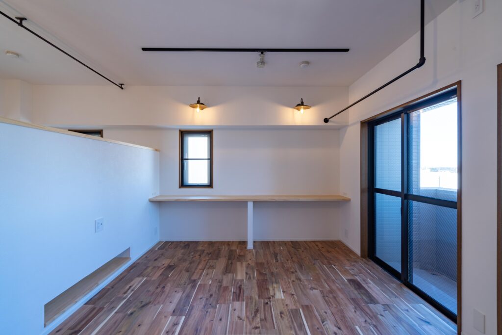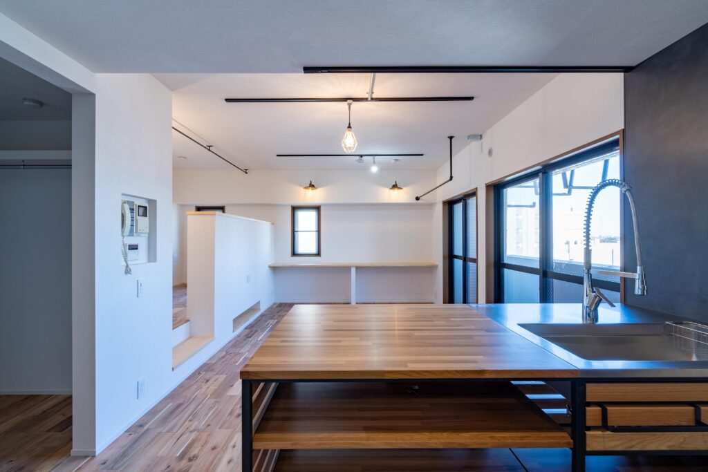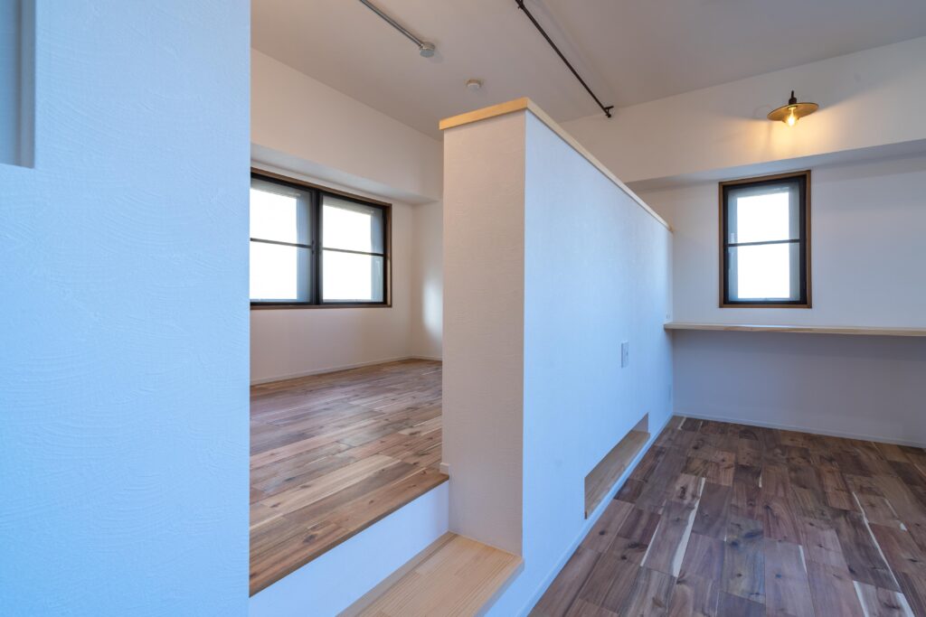 間仕切り壁は天井まで伸ばさず、あえて空間に余白を残しました。