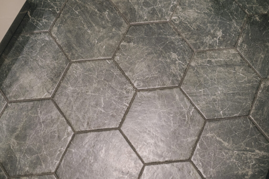 床には石目調のヘキサゴンタイルを採用。