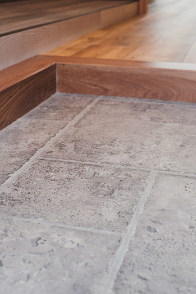 玄関フロアには石調のタイルを使用。