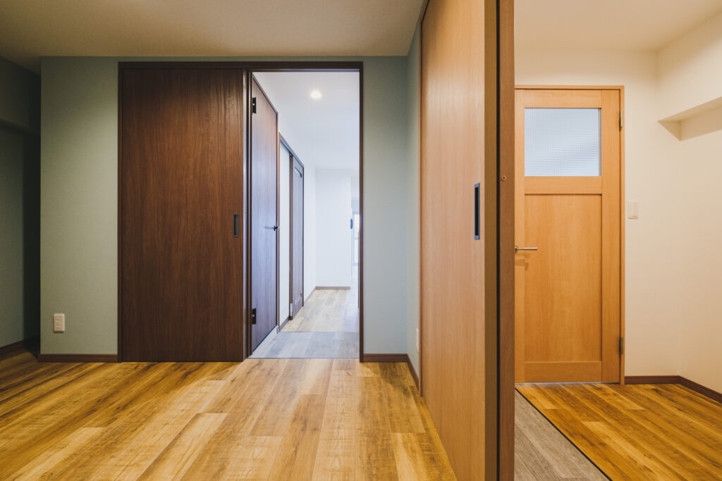 LDKに隣接する寝室は引き戸で仕切られ、ドアの開閉が邪魔になりません。