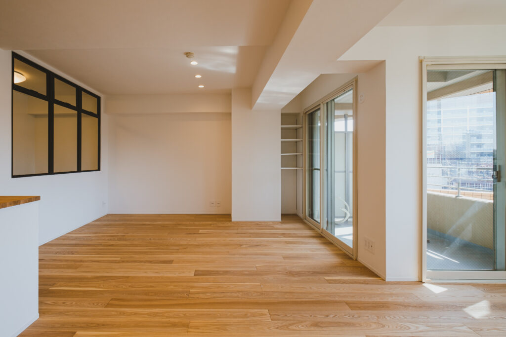 かつて部屋を分けていた壁は取り払われ、ひと続きのリビングダイニングへ。