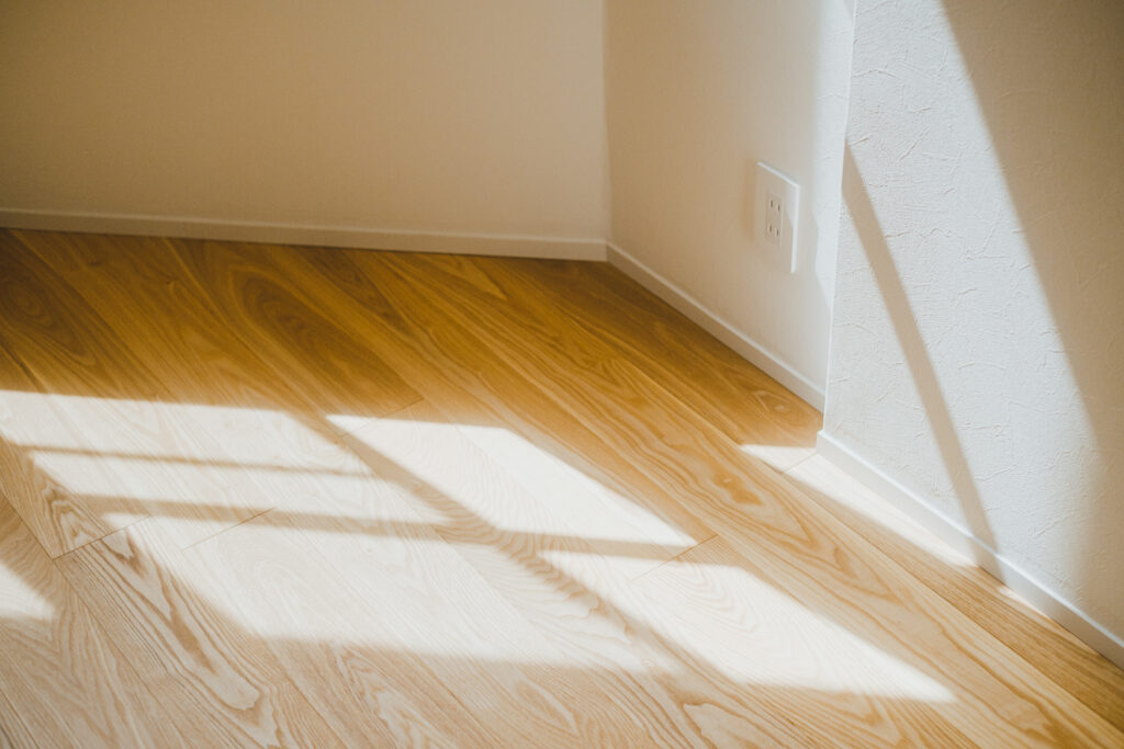 足元に広がるのは、無垢材のフローリング。