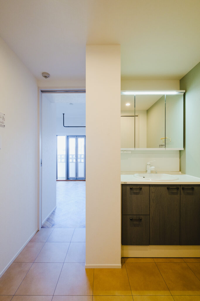 洗濯機からバルコニーまでの距離を最短に抑え、無駄のない動線を描きました。