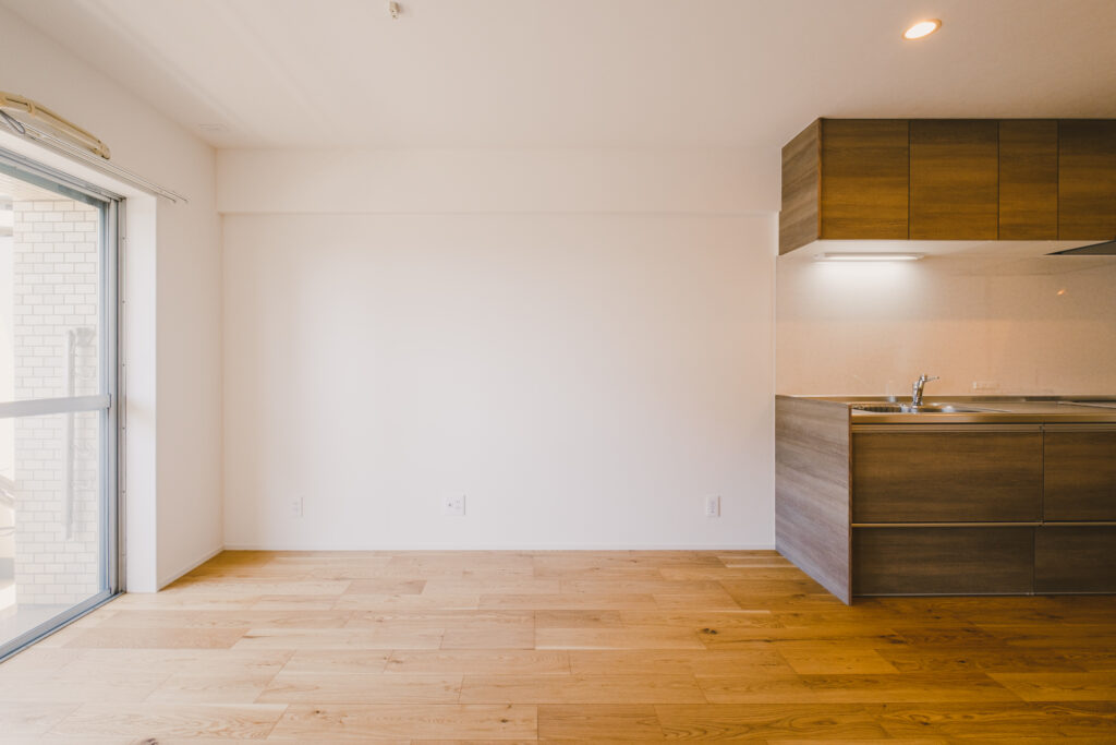 白で統一された壁・天井・建具は、視界を広く見せてくれるよう。