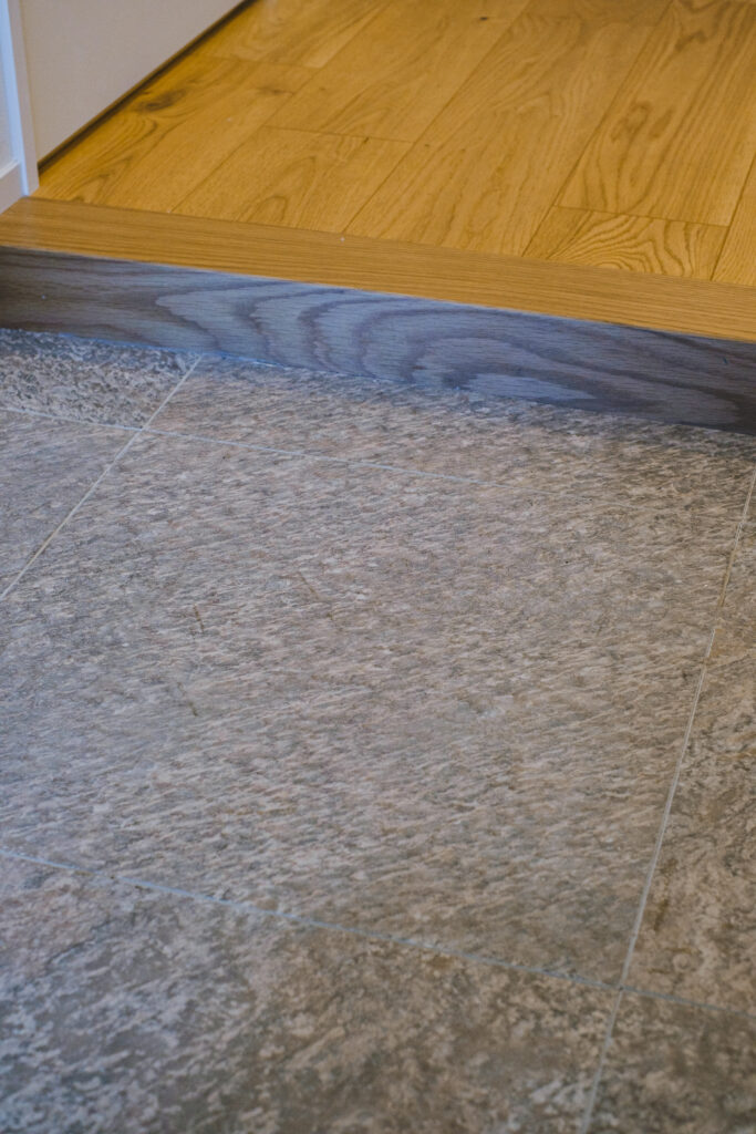 玄関フロアには、濃いトーンの石調タイルを採用。