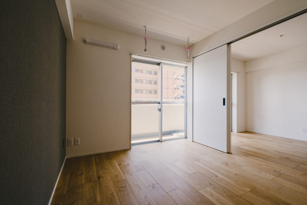 もうひとつのベッドルームには、大人の落ち着きを演出するアクセントクロスを採用。
