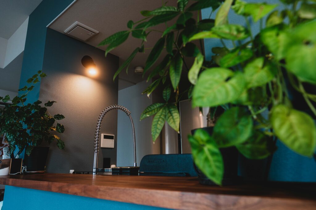 観葉植物やインテリアアイテムを置けるカウンターも設置し、まるで絵画のようにまとめました。