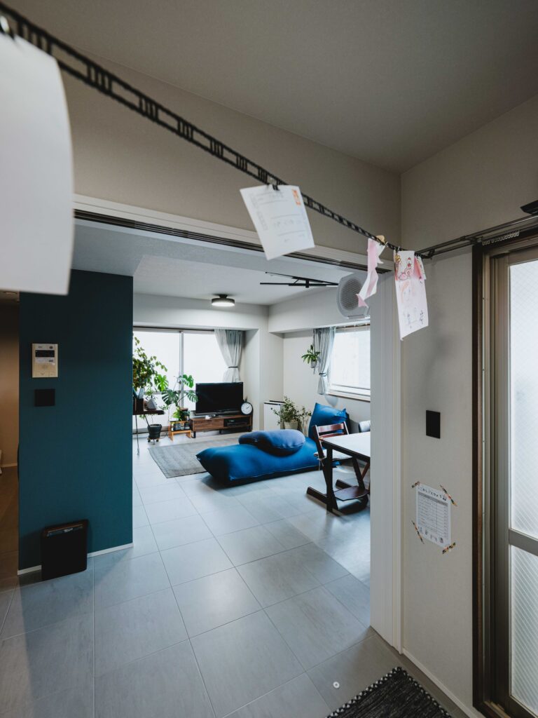 リビングと隣接する部屋の間には、3枚の上吊り引き込み戸を設置。