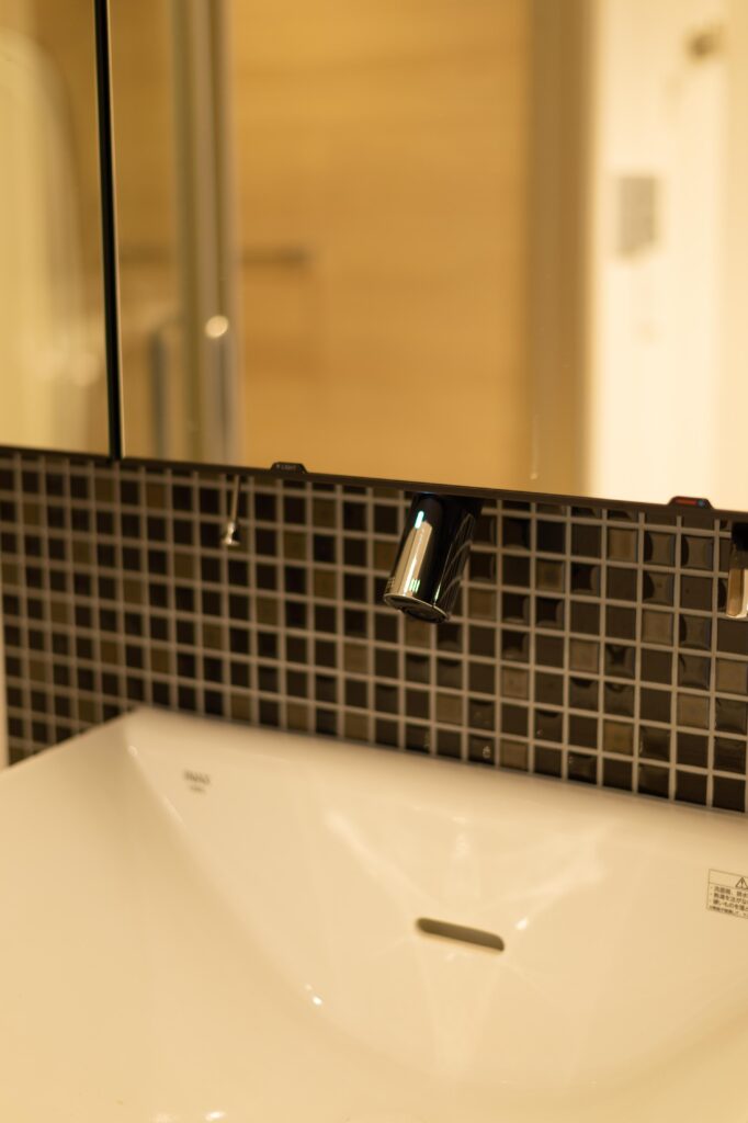 背面のモザイクタイルが光を受け、さりげなく表情を変える。