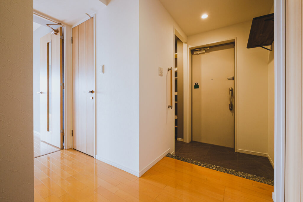 右手のシューズクローゼットは扉を外し、オープン仕様へ。