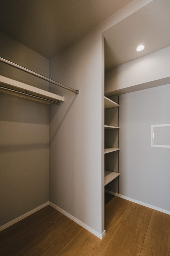 アーチの先には、豊富な収納力を備えたウォークインクローゼット。