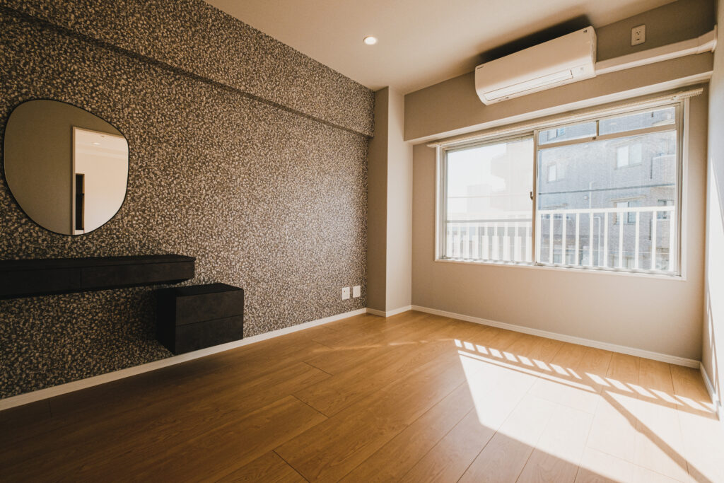 壁一面に選んだ個性的なアクセントクロス。