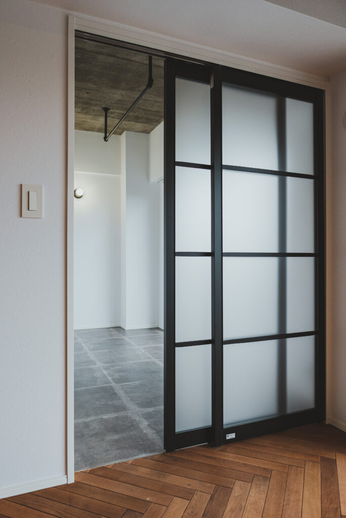 黒の窓枠とインテリアガラスがほどよいアクセントとなり、どこかロマンチックな印象を添えています。
