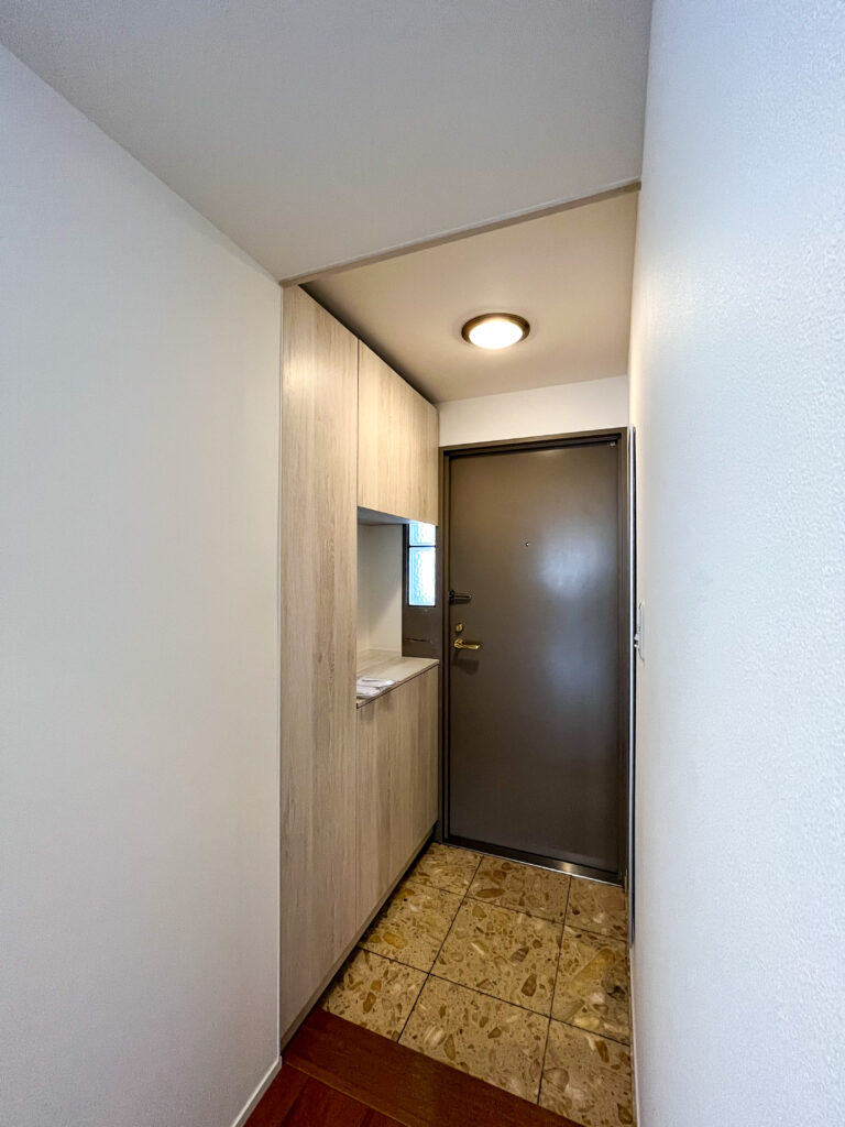 今回はその壁をすべて撤去し、清潔感のあるシンプルなクロスで再構築。