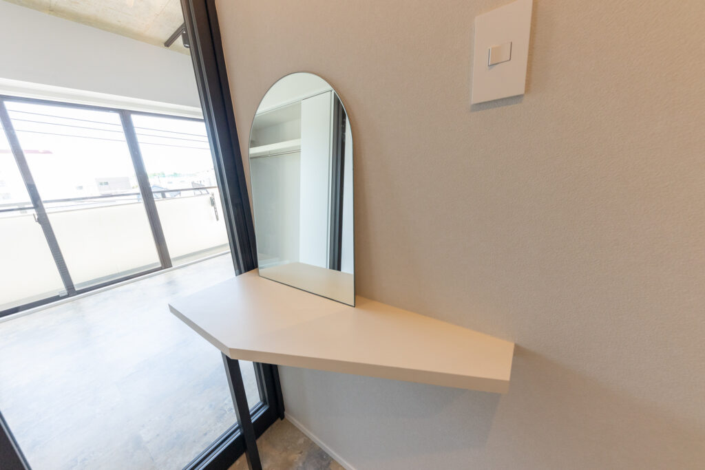 ベッドとドレッサーカウンターだけに整え、余計なものをそぎ落としました。