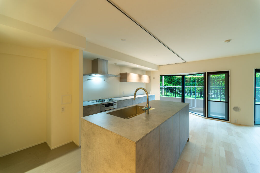 キッチンの向きを丸ごと変更し、ベランダとの一体感を