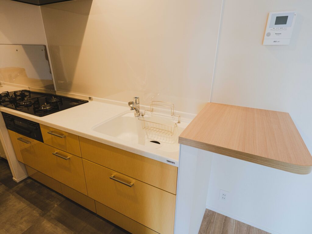 キッチン横に設けた固定式カウンターは、この空間のもうひとつの主役。