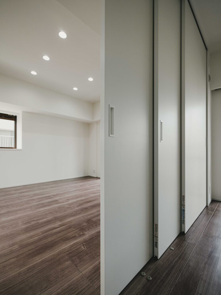 すべての扉を引き戸にすることで、スムーズな動線とすっきりとした印象を実現しました。