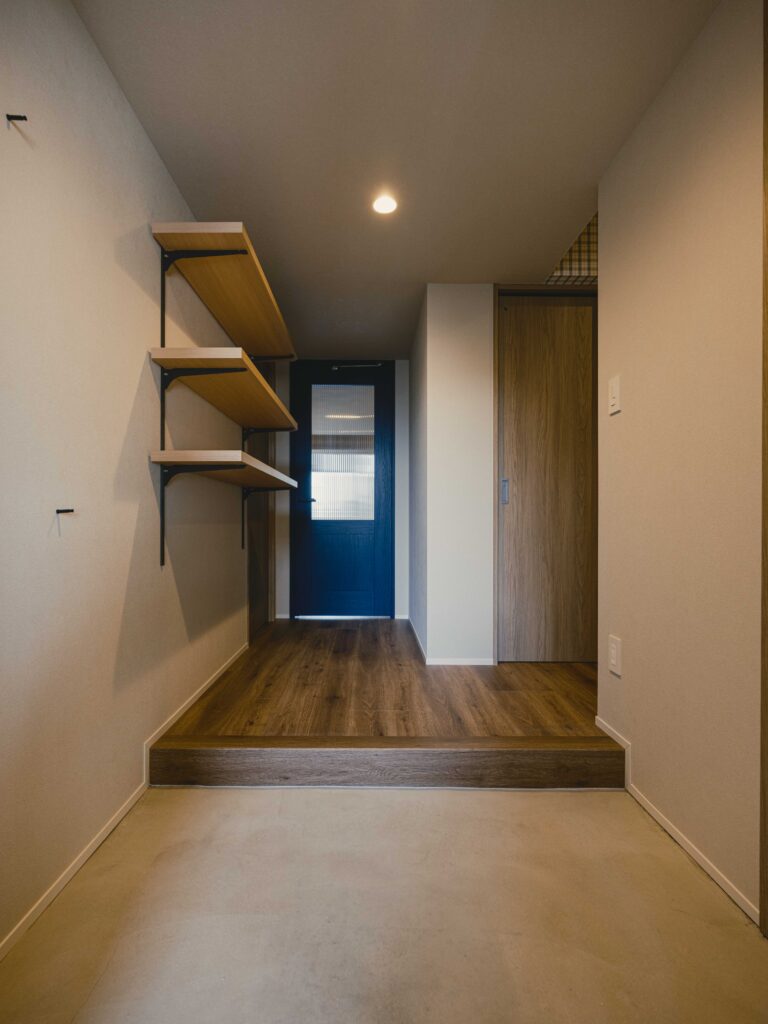 玄関土間は広めに設計し、ベビーカーを置ける十分な広さを確保。