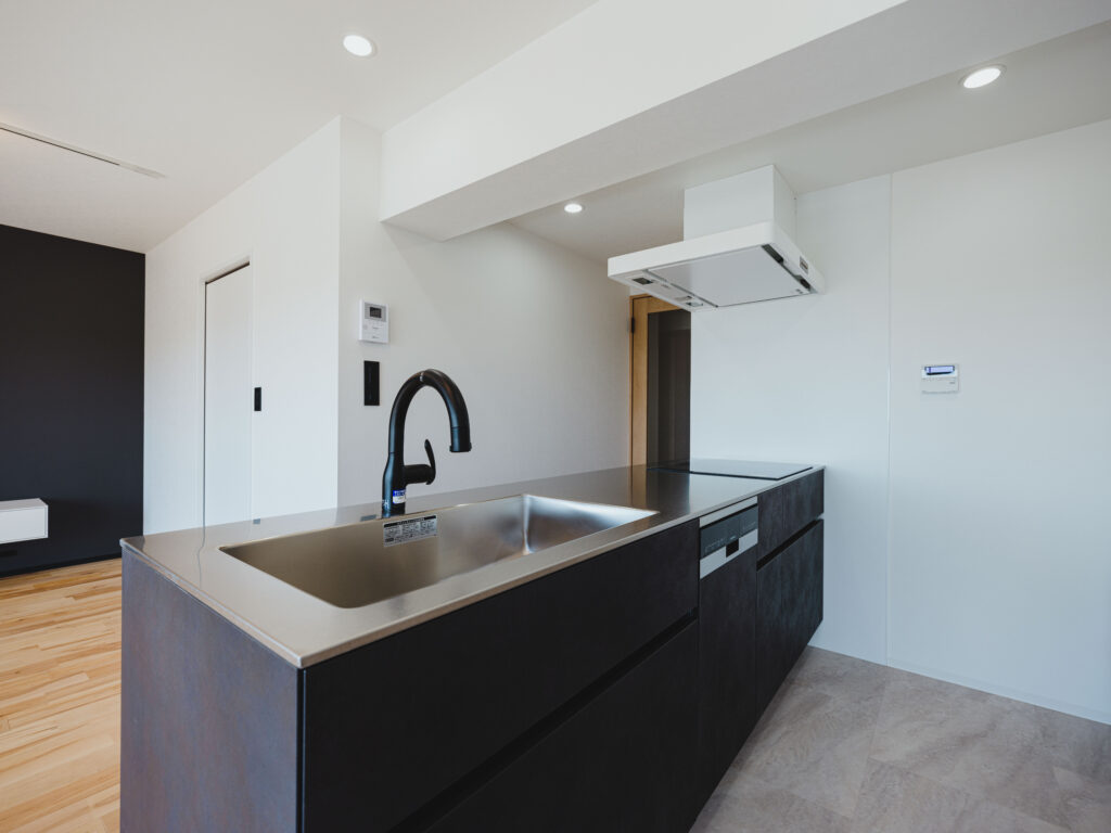 既存の設備を活かしながらも、必要な箇所には新しい機能を取り入れ、家事の効率と空間の美しさを両立。