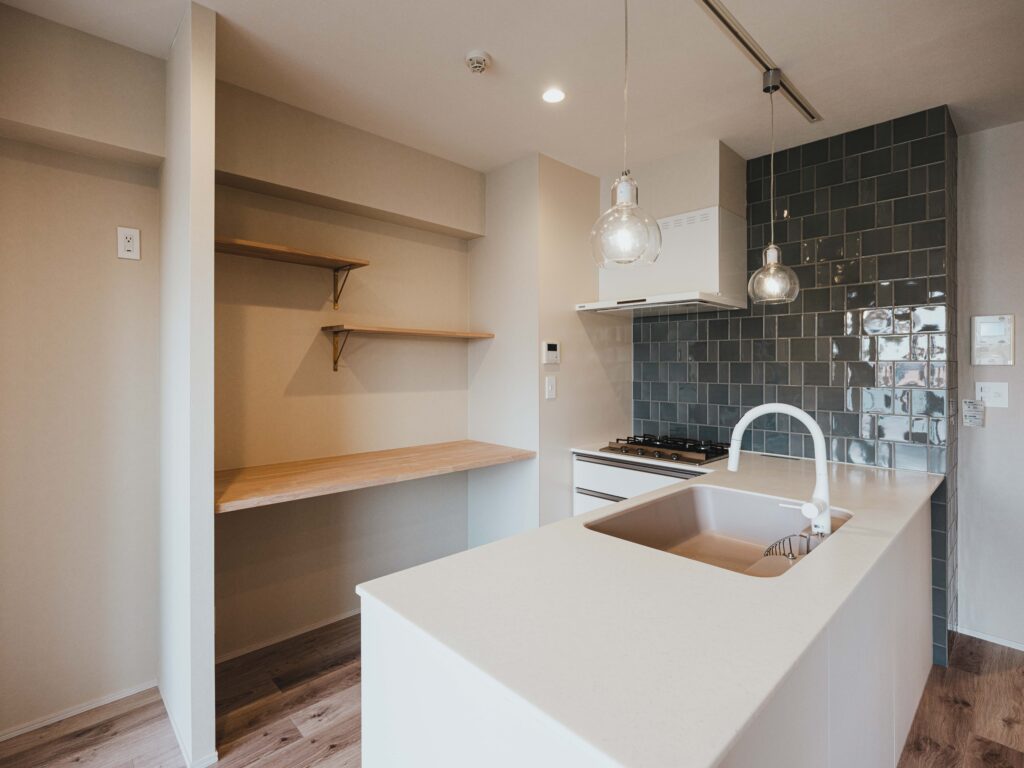 でも、飾り棚やタイル貼りのアクセントが、まるでモデルルームのような雰囲気を演出しています。
