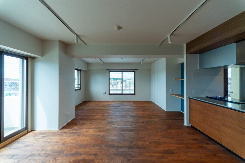 三方角部屋の開放感と恵まれた立地を活かした、高級感のあるリノベーション事例をご紹介します。