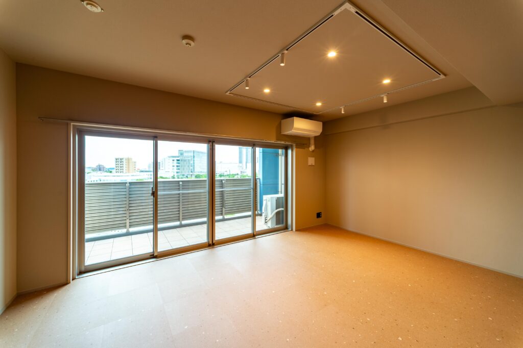 3.6mの掃き出し窓から差し込む光とバルコニーの景色が自然に溶け込み、心地よい開放感を生み出しているのも魅力です。