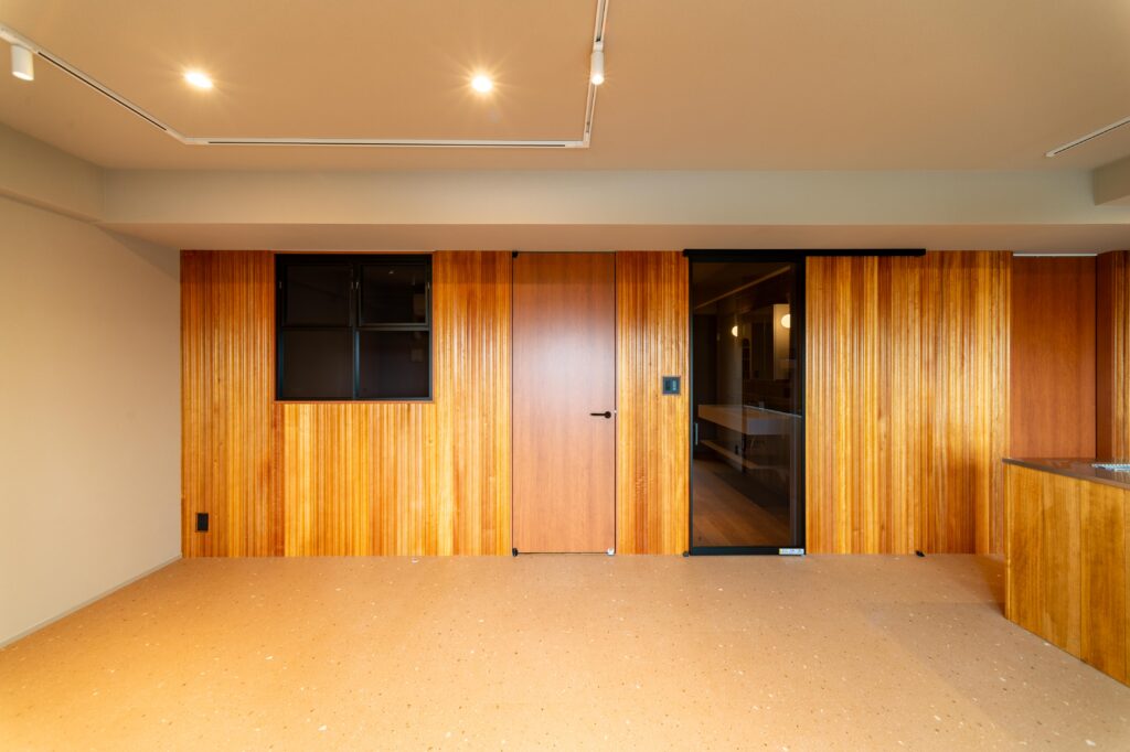 床の連続性を大切にした設計により、空間はまるで水平に無限に広がるかのような印象を与えます。