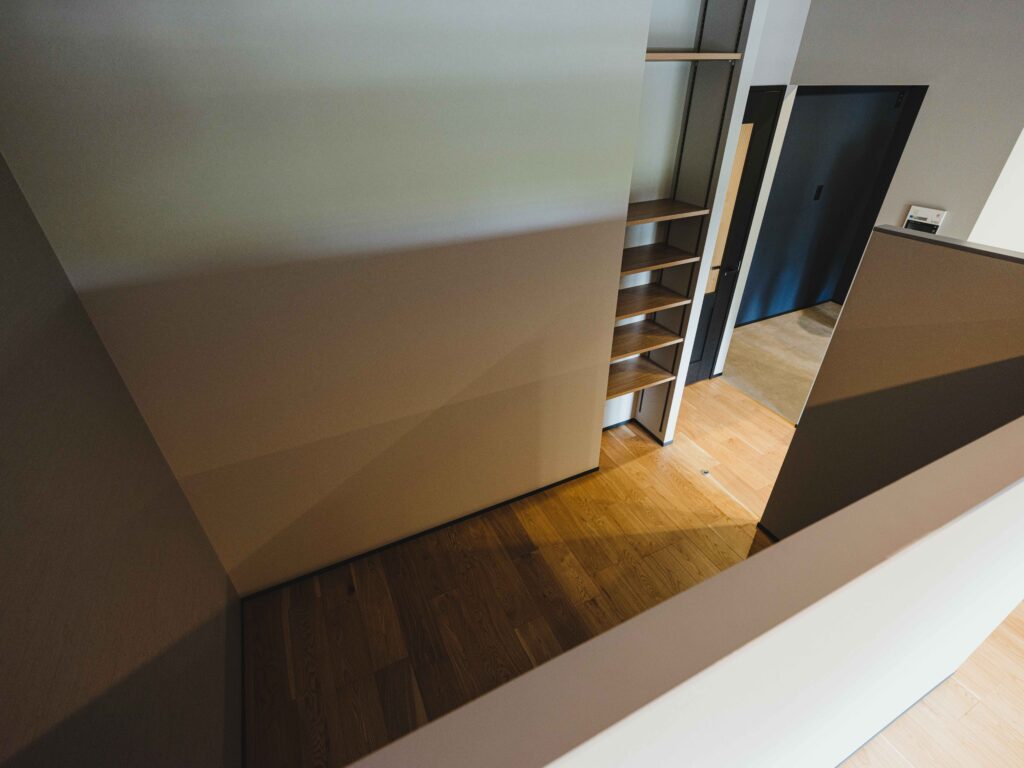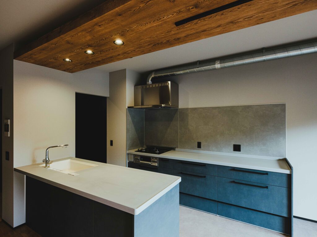 パントリーは天壁ともにダークネイビー色とし、キッチン側からみて暗がりになるようにしました。施主様も「やってよかった」と一言。